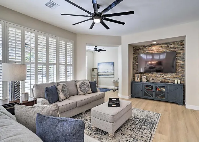 La Pool Access Mtn-View Palm Desert Home! dispone una cocina bien equipada con lavaplatos, nevera y un horno para satisfacer todas las necesidades de los huéspedes. La villa se encuentra a 30 km del aeropuerto Internacional de Palm Springs. Esta casa de vacaciones incluye un jacuzzi y bañera de hidromasaje.